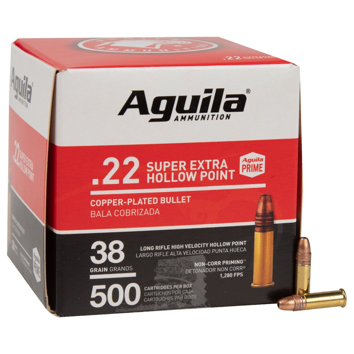 Aguila 22 Long Rifle 38gr Copper-Plated Hollow Point Rimfire Ammo – 500 Rounds – Aguila’s Standard High Velocity rounds are ideal for target shooting or plinking and provide tight groupings. The copper-plated bullet provides excellent accuracy, consistent performance and smooth cycling.