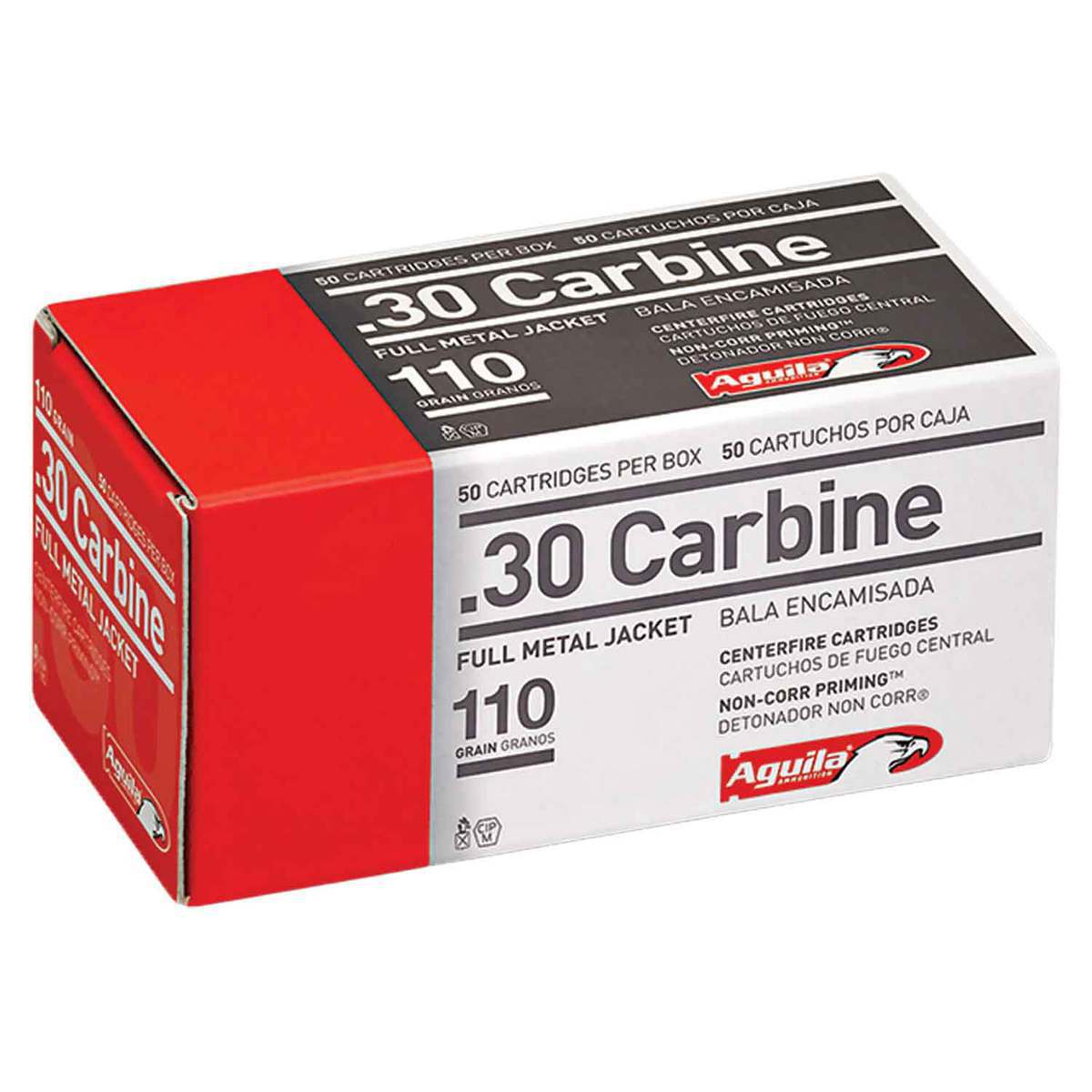 Aguila 30 Carbine 110gr FMJ Rifle Ammo – 50 Rounds – Aguila’s focus on accuracy makes this a perfect round for target and tactical applications. They added a boat tail to this short-action round to deliver even more precision. Aim with confidence with a round that’s a favorite with military snipers and law enforcement sharpshooters.