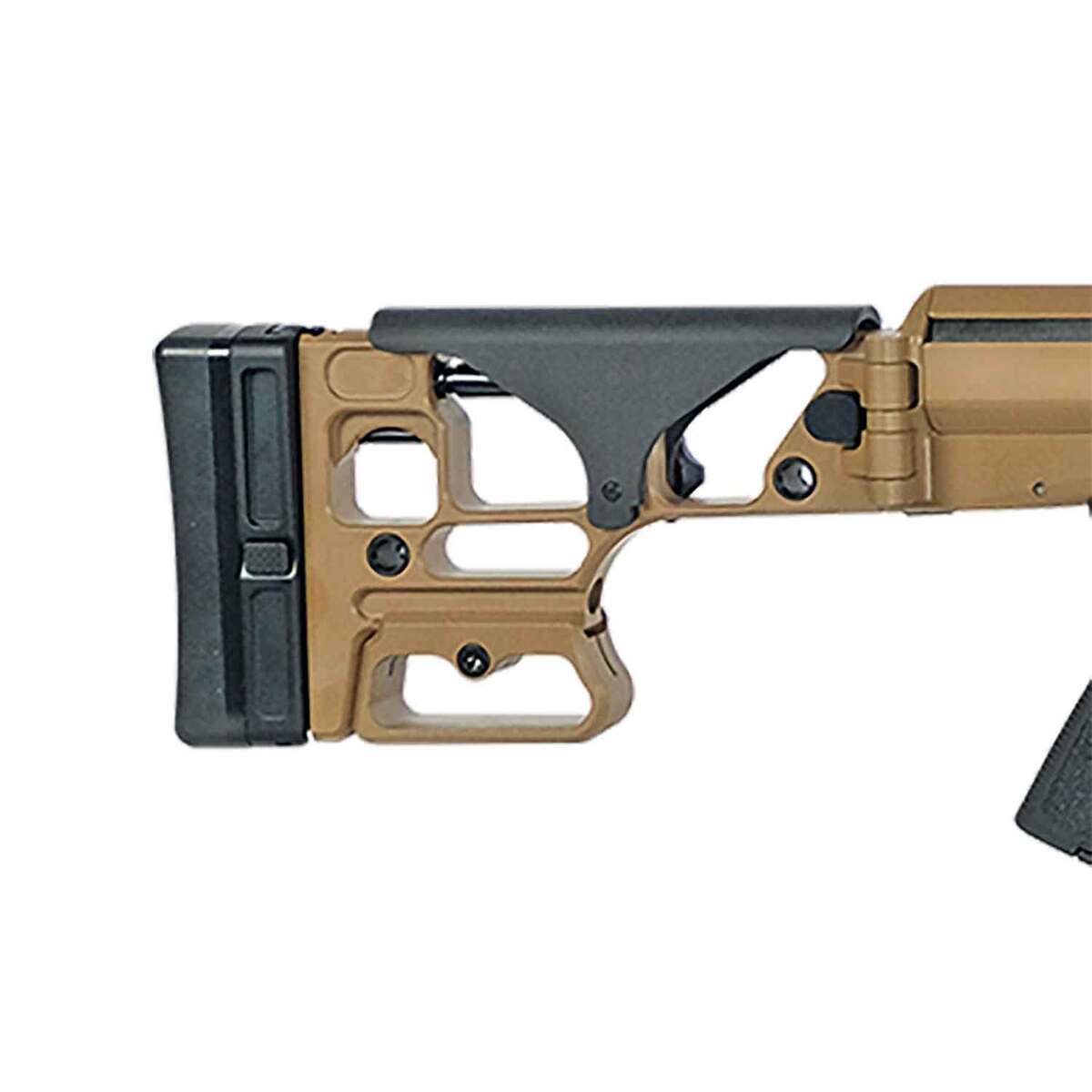 Barrett MK22 Coyote Brown Cerakote Bolt Action Rifle – 300 Norma Magnum – 26in – The MK22 defines a new class of long-range rifles by providing even greater capability within the MRAD rifle platform. With unfailing precision and Sub-MOA performance, this bolt action sniper rifle adapts to a variety of user needs by converting between 7.62 x 51mm, 300 Norma Magnum and 338 Norma Magnum calibers. The aluminum chassis features a folding stock with adjustable length of pull and cheek piece, M-LOK attachment system, 10 mil rail, and suppressor capable muzzle brake.