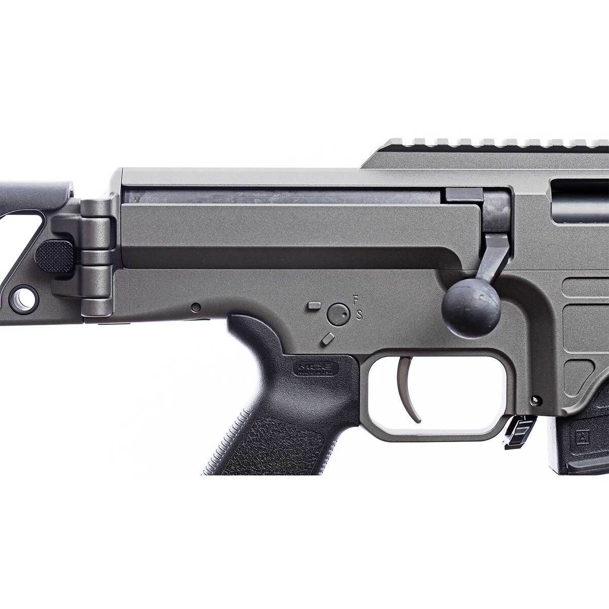 Barrett MRAD 300 Norma Magnum Tungsten Gray Cerakote Bolt Action Rifle – 26in – Designed with both precision and modularity in mind, the MRAD is equally at home on the range or on duty. Contained within the lower receiver is a fully adjustable match-grade trigger module, allowing the user to easily set their ideal pull. The MRAD stock folds on the right side, reducing overall width for a minimal footprint and ease of transport. When extended, the stock locks securely into place, providing an interface as rigid and stable as any fixed-stock rifle.