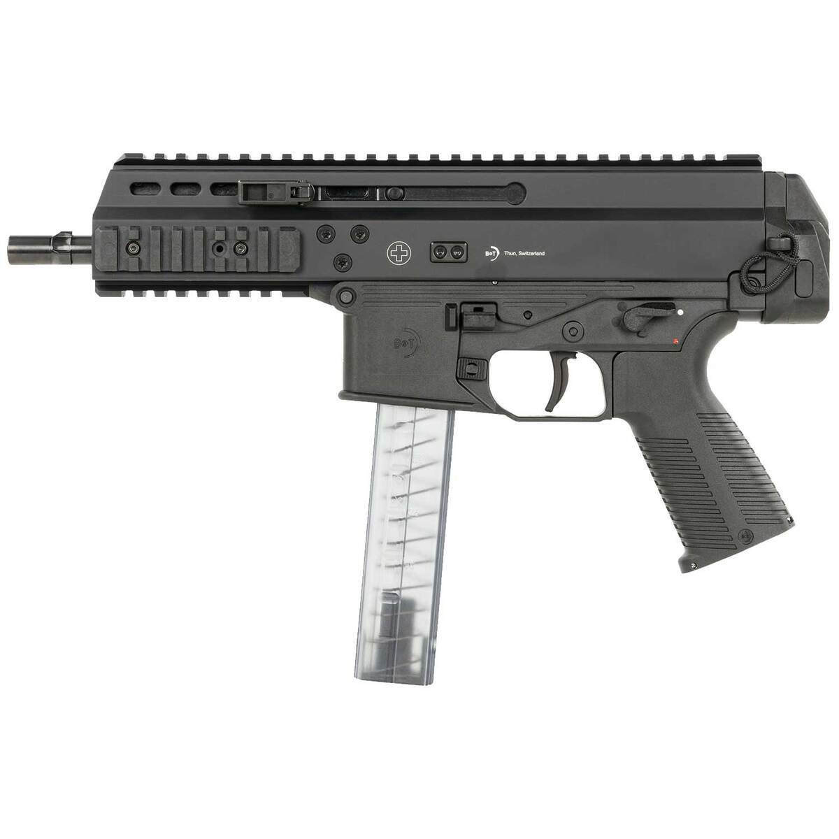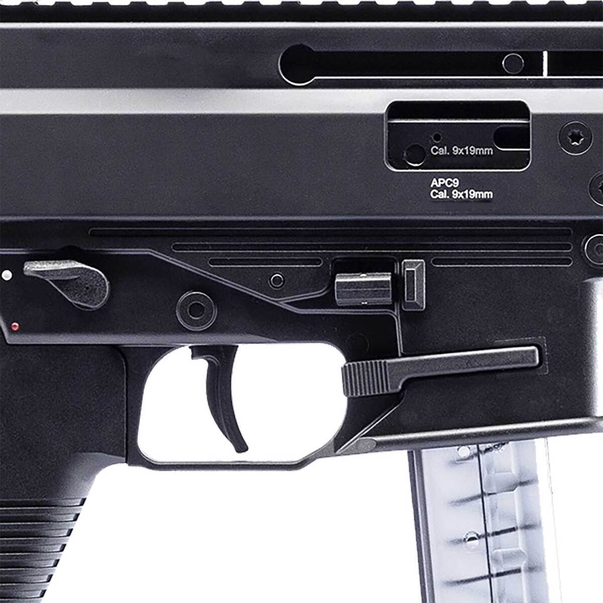 B&T APC9 Pro 9mm Luger 7in Anodized Black Modern Sporting Rifle – 30+1 Rounds – The APC PRO series brings a new level of performance and adaptability to the APC platform. All models feature a dual auto-folding, non-reciprocating charging handle, improved lower receiver ergonomics including a side positioned bolt hold open/release, removable M4 compatible grips, and Magpul M-Lok accessory slots.