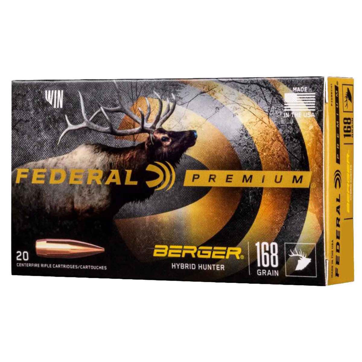 Federal Premium 280 Ackley Improved 168gr Berger Hybrid Rifle Ammo – 20 Rounds – Blend the profile of a low-drag match bullet with a traditional hunting projectile design and you’re ready to take on almost anything that walks on four legs. Berger Hybrid Hunter bullet weights have been fine-tuned to provide exceptional accuracy through any rifle. Ballistic coefficients exceed those of comparable designs thanks to a hybrid nose design that combines tangent and secant ogive features.