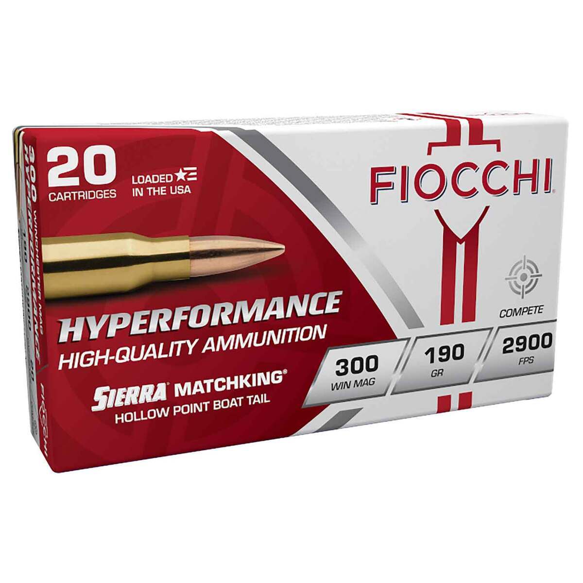 Fiocchi Hyperformance 300 Winchester Magnum 190 gr Sierra MatchKing HPBT Rifle Ammo – 20 Rounds – With a thick jacket, improved boat-tail, and long ogive, MatchKing bullets have long been the standard by which all others are measured. Loaded at the state-of-the-art Fiocchi facility in Ozark Missouri, Fiocchi Hyperformance Match ammunition provides precision you can count on at a factory-loaded price you can afford. MatchKing is a registered trademark of Sierra Bullets.