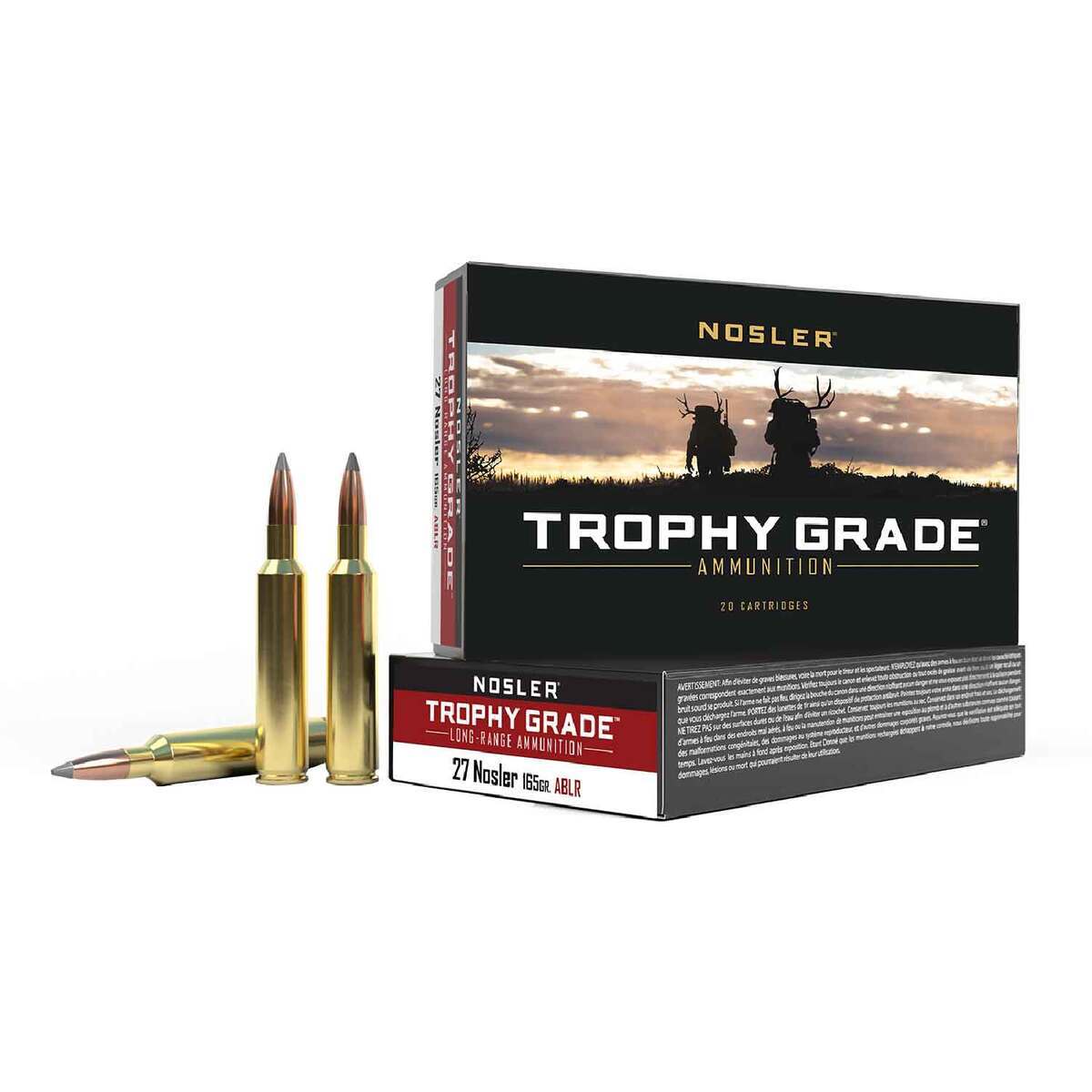 Nosler Trophy Grade Long Range 27 Nosler 165gr Accubond Rifle Ammo – 20 Rounds – Nosler Trophy Grade ammunition is loaded with Nosler AccuBond bullets. The AccuBond’s unique white polymer tip assures accuracy and smooth chambering, while the boat-tail base at the rear of the bullet acts as a platform for large diameter mushrooms. Designed for accuracy near or far, Nosler’s Trophy Grade ammunition provides undeniable reliability.