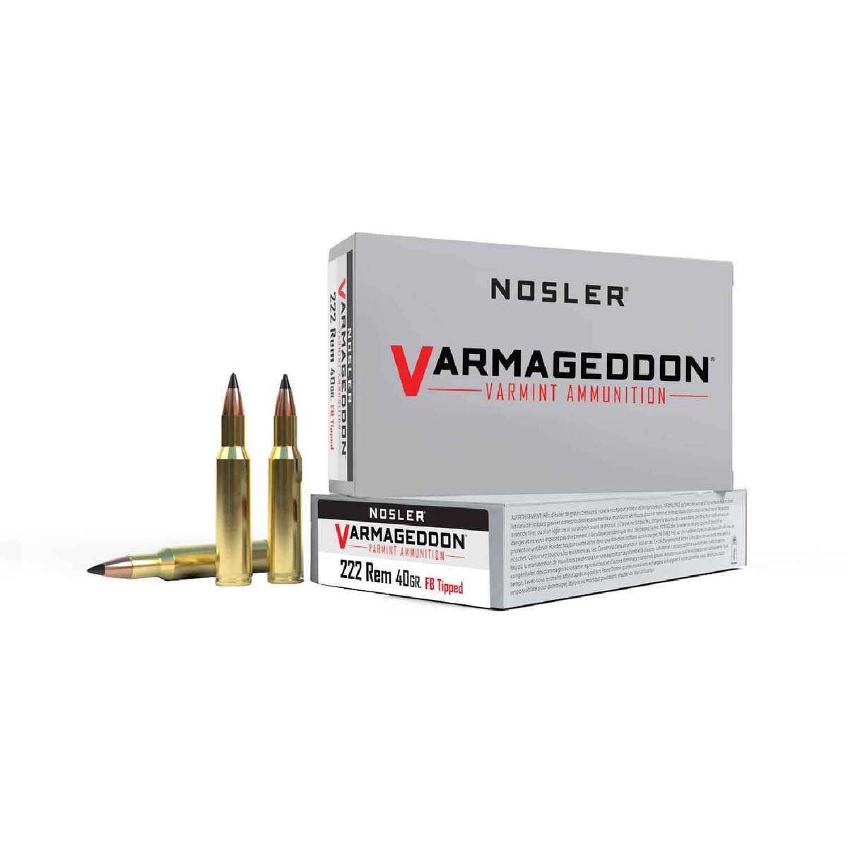 Nosler Varmageddon 222 Remington 40gr FB Tipped Rifle Ammo – 20 Rounds – Nosler Varmageddon ammunition is loaded with Nosler Varmageddon bullets, delivering high velocities and exceptional terminal performance on varmints at all practical ranges. The bullet’s special lead-alloy core combines with the copper-alloy jacket to violently expand upon impact while the flat base design brings you bench-rest accuracy. Created for the high-volume varmint shooter, Nosler Varmageddon ammunition provides Nosler’s legendary quality and accuracy at an economical price.