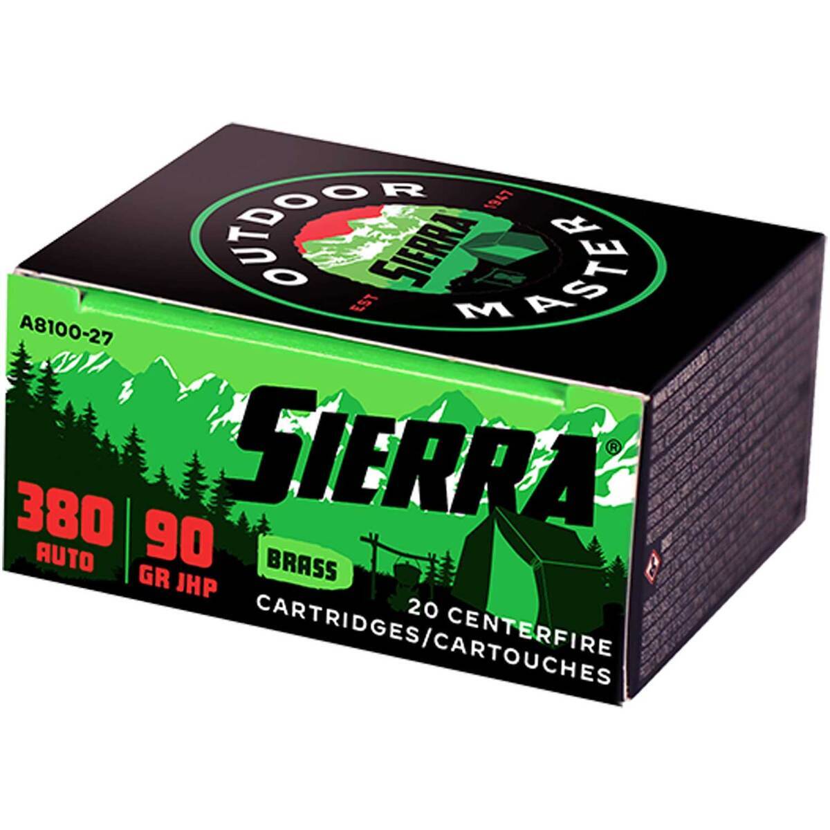 Sierra Outdoor Master 380 Auto (ACP) 90gr JHP Handgun Ammo – 20 Rounds – Sierra Outdoor Master cartridges utilize innovative components and production processes that deliver an economical cartridge suitable for all purposes. Packed with hard-hitting terminal performance and the same attention to detail that Sierra is famous for, Outdoor Master will get you outside with confidence.