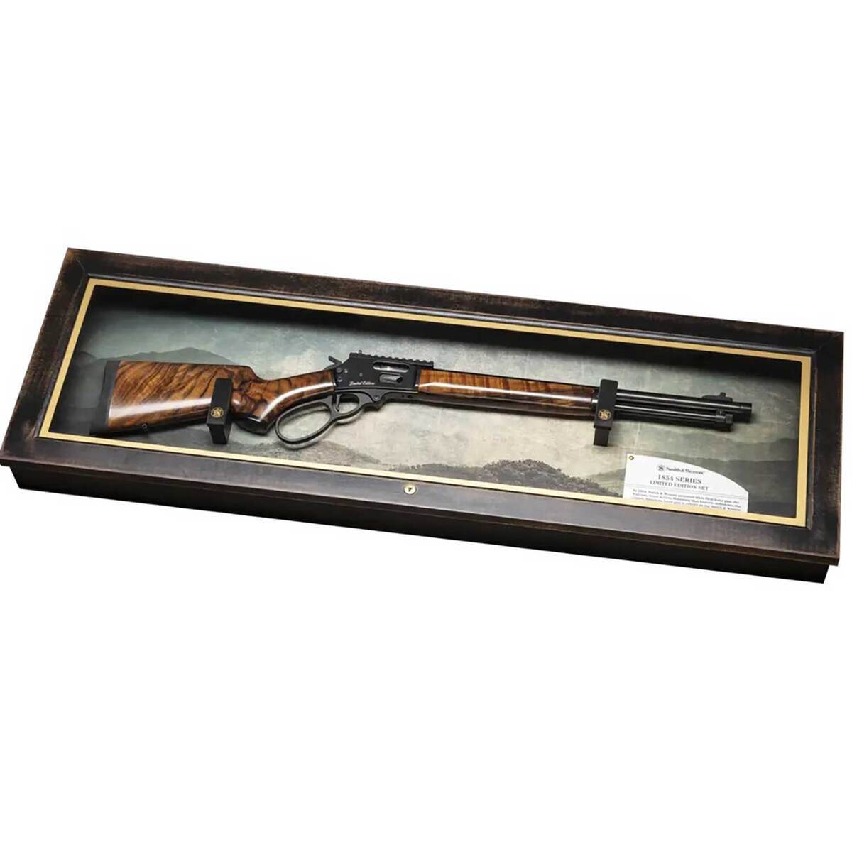 Smith & Wesson Model 1854 Limited Edition 44 Magnum Black PVD/High Grade Walnut Lever Action Rifle – 19.25in – Introducing the Model 1854 by Smith & Wesson, a triumph of over 170 years of craftsmanship. This lever-action rifle seamlessly melds precision engineering and timeless design with modern features, including a Picatinny rail for optics. Experience the perfect blend of heritage and innovation – experience Smith & Wesson Smooth.