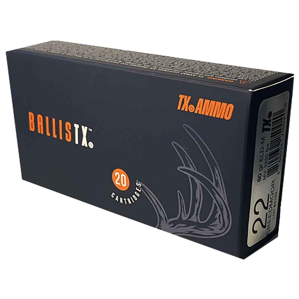 Texas Ammo BallisTX 22 Creedmoor 80gr ELD-M Rifle Ammo – 20 Rounds – BallisTX 22 Creedmoor 80 gr Extremely Low Drag-Mat with a brass casing.