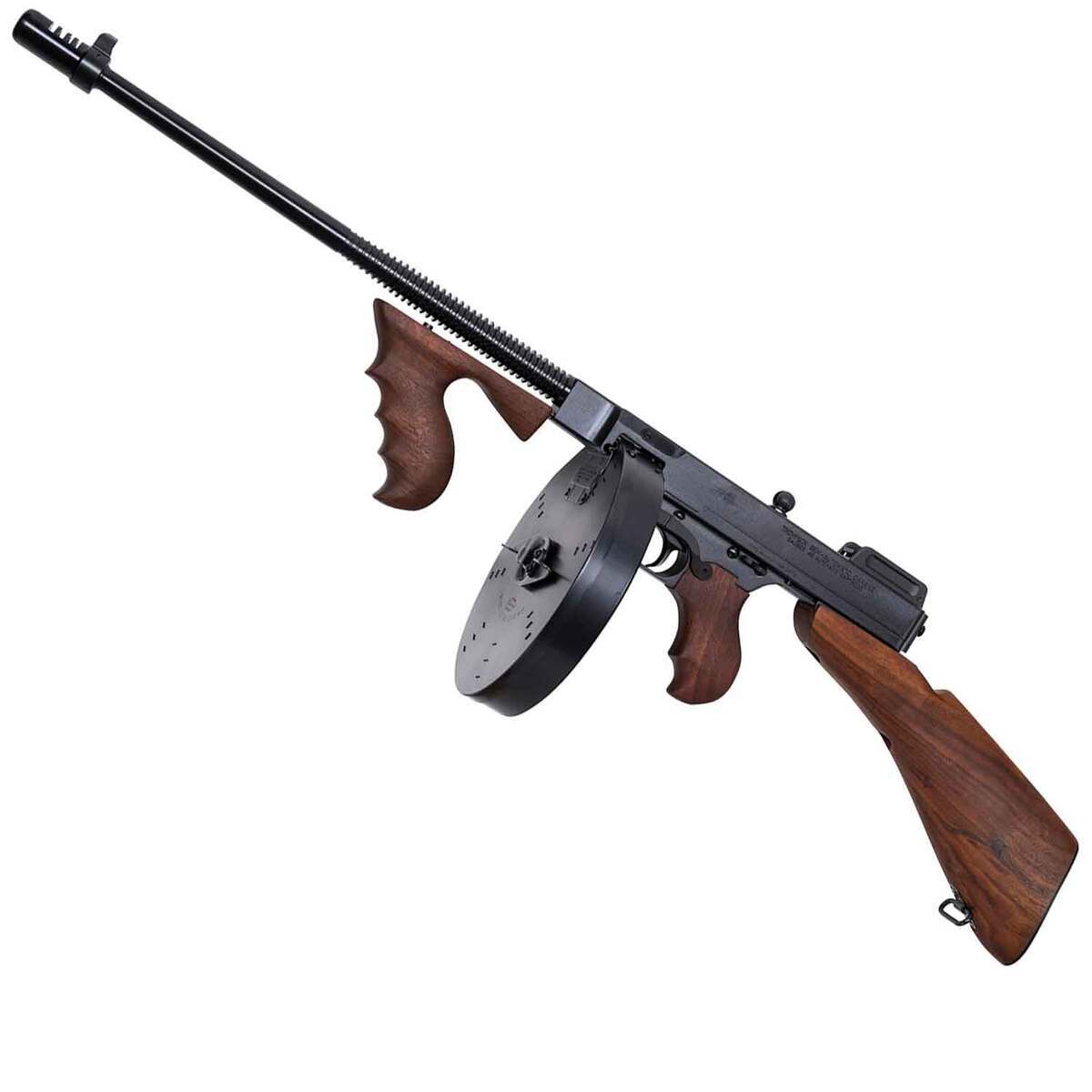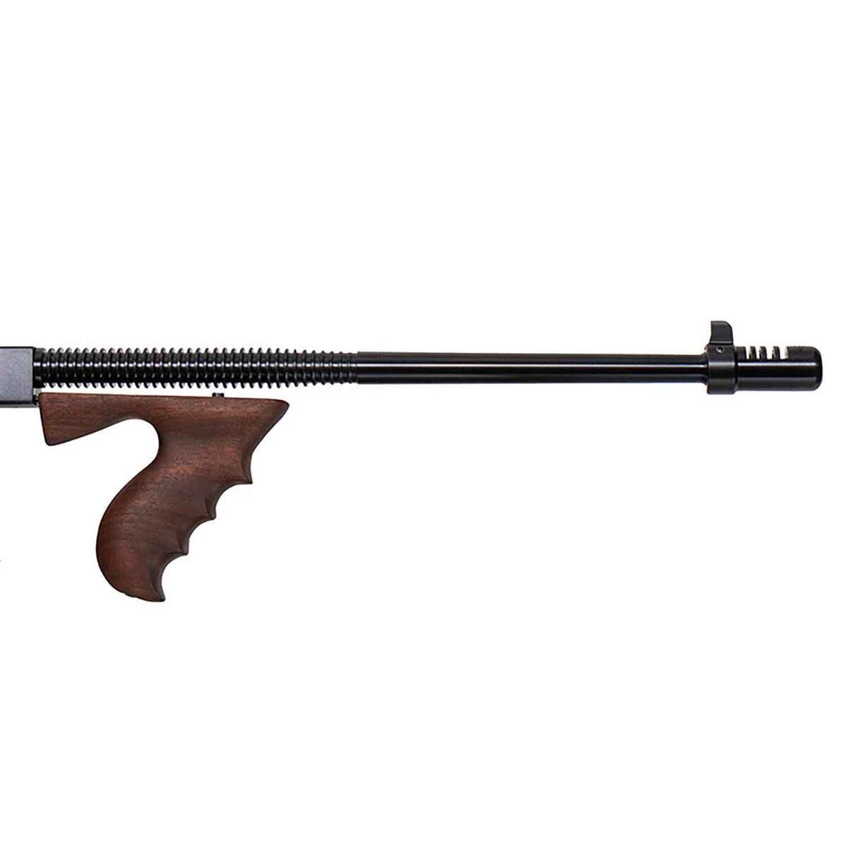 Thompson Center Arms 1927A-1 American Walnut Semi Automatic Rifle – 45 Auto (ACP) – 18in – The Thompson 1927-A1 has a pinned Cutts compensator, which lengthens the finned barrel length to 18in, and puts the overall length for the carbine at 41in from buttstock to muzzle. It has a blade front and open rear adjustable sight. The fixed stock is crafted in luxurious polished American Walnut and has a vertical foregrip.