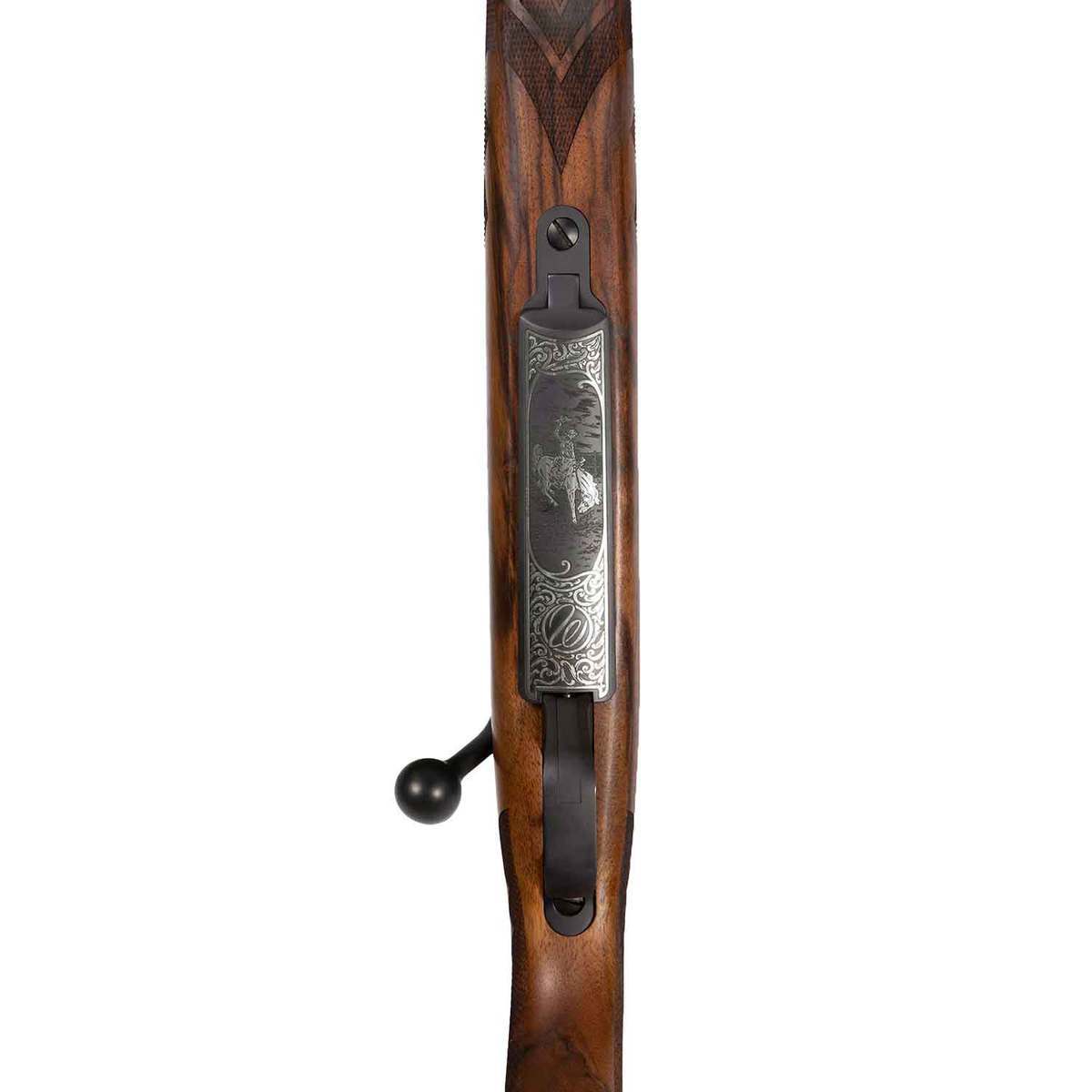 Weatherby Mark V Wyoming Silver Edition Blued Bolt Action Rifle – 300 Weatherby Magnum – After announcing their move to Wyoming, Weatherby immediately started receiving requests for the first Mark V’s stamped “Sheridan, WY”. The demand for these new rifles served as the catalyst for the development of their Wyoming Commemorative. Weatherby saw this historic move to the Cowboy State as an opportunity to make a limited rifle set that would showcase the Weatherby quality and craftsmanship while boasting their new location at the foot of the Bighorn Mountains in beautiful Sheridan, Wyoming. The Wyoming Commemorative Silver Rifle has specific differences to its brother the Gold Rifle. The most valuable difference will be the WY serialized receivers have a higher range starting at WY000501. Also, the Silver edition will have no gold inlay, no barrel bands, and has a AAA Fancy French Walnut stock vs. The Golds Exhibition grade. These rifles will be a collector’s piece that will be admired for generations to come.