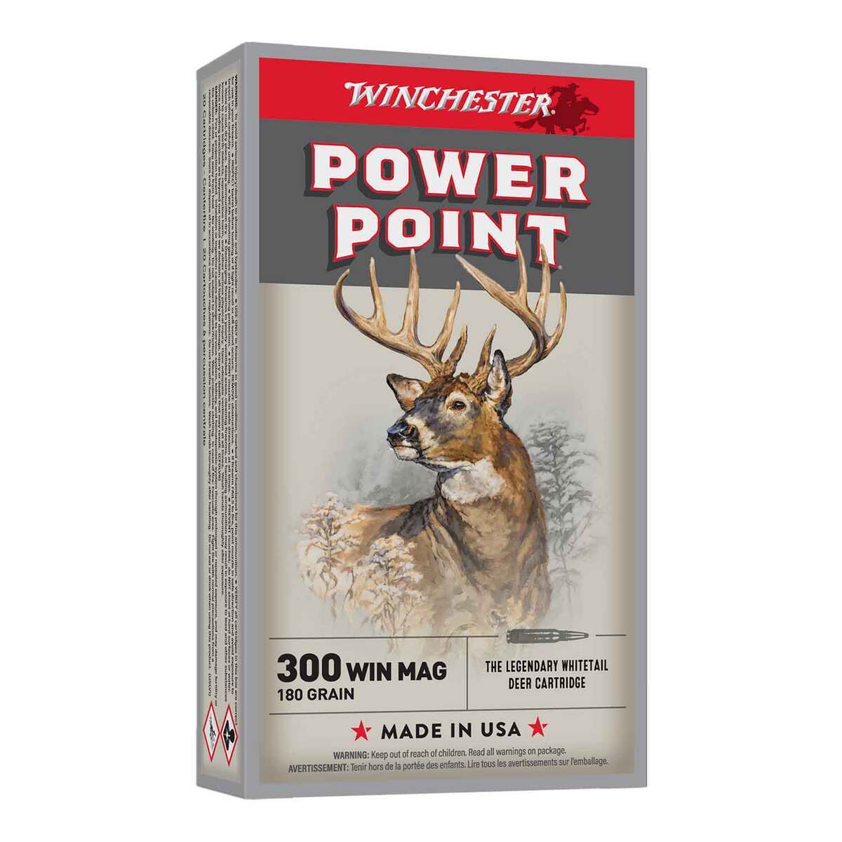 Winchester Power-Point 300 Winchester Magnum 180gr Power Point Rifle Ammo – 20 Rounds – For decades, hunters and shooters have relied on Winchester Super-X rifle ammunition. Best known for time-proven dependability, the rounds offered include a hollow point and lead core for rapid expansion on game, as well as a thin-wall jacket, which reduces engraving forces for improved accuracy.