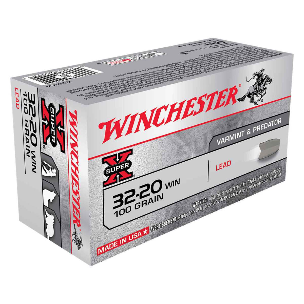 Winchester Super-X 32-20 Winchester 100gr Lead Rifle Ammo – 50 Rounds – For decades, hunters and shooters have relied on Winchester Super-X rifle ammunition. Best known for time-proven dependability, the rounds offered include a hollow point and lead core for rapid expansion on game, as well as a thin-wall jacket, which reduces engraving forces for improved accuracy.